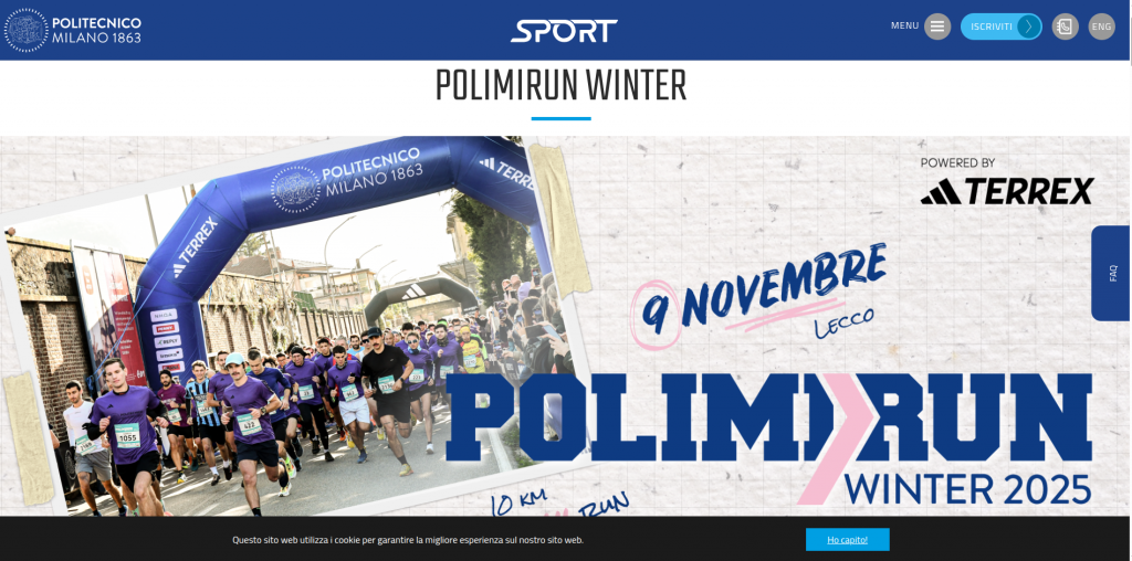Oggi, 9 novembre, torna la PolimiRun Winter, l’urban trail run organizzata dal Politecnico di Milano e sponsorizzata da adidas Terrex. L’evento, che si svolgerà tra i suggestivi paesaggi del Campus di Lecco, unisce sport, divertimento e spirito di comunità, coinvolgendo studenti, personale e appassionati del mondo Politecnico.